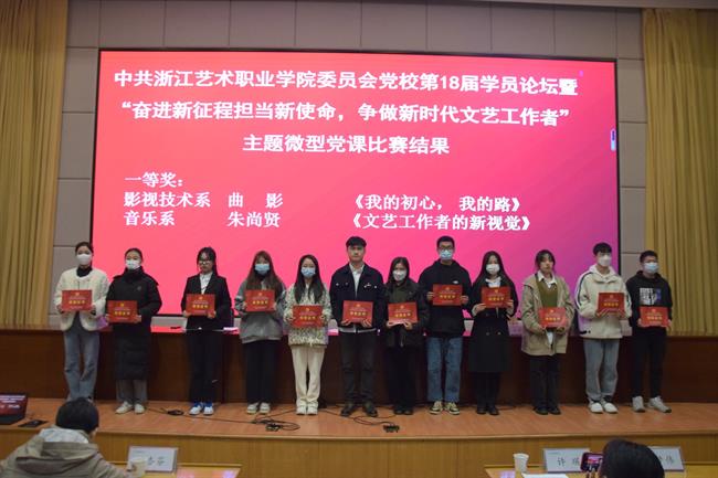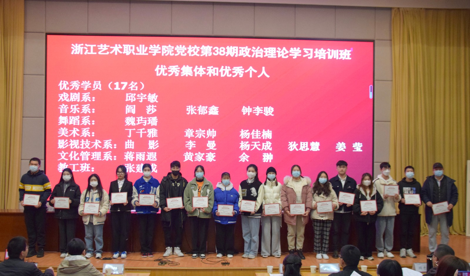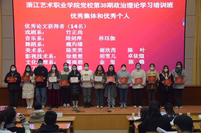 本期培训班共有167位学员参加培训,161位学员通过考核。仪式上,宣读了第38期政治理论学习培训班结业学员名单,对党校优秀集体、优秀班主任、优秀学员、优秀论文获得者、第18届党校学员论坛暨“奋进新征程担当新使命,争做新时代文艺工作者”主题微型党课比赛获奖者进行了表彰。