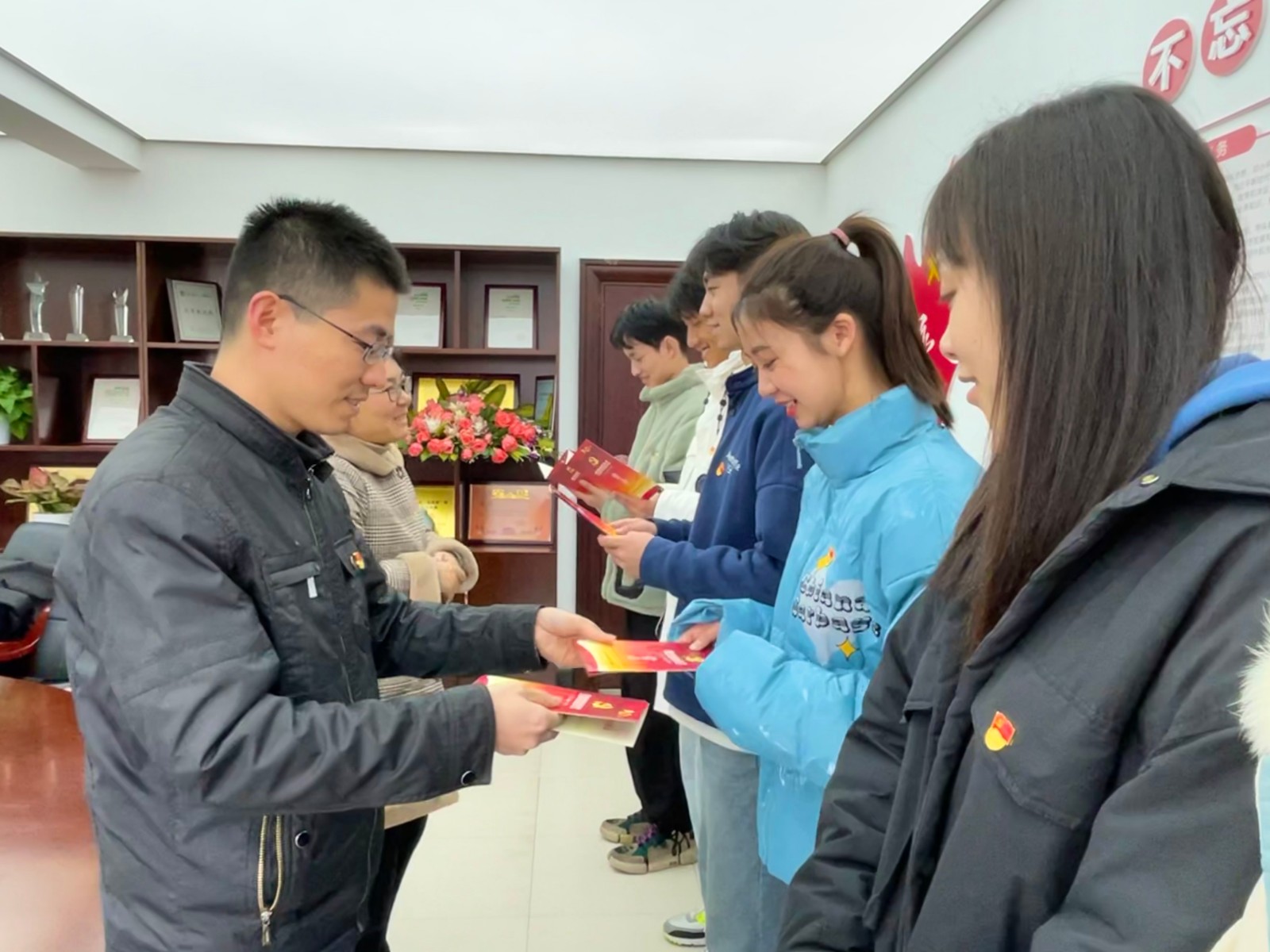 江晓新对同学们加入党组织表示祝贺,希望新党员不但要在组织上入党,更要在思想上入党,要永远保持入党的初心,把入党作为人生、事业的新起点。全体党员同志在支部书记王玉簪的带领下进行集体宣誓,面向党旗,举起右手,掷地有声地宣读“我志愿加入中国共产党,拥护党的纲领,遵守党的章程,履行党员义务......”每名党员都用发自内心的声音宣告了自己对党忠诚的决心。