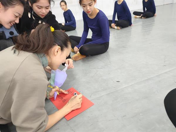 舞蹈系团委学生会的同学们别出心裁,利用周末时间亲手编织爱的花朵,在节日当天给老师们一个惊喜。同学们在前一天准备好了手工制作材料,分工明确,男生女生一起,有的剪“花枝”,有的剪“花瓣”,有的把“花瓣”们粘成“花朵”,有的把做好的“花”包装好。心灵手巧的他们从零学起,仅用一整天的时间就做出了300朵手工花。