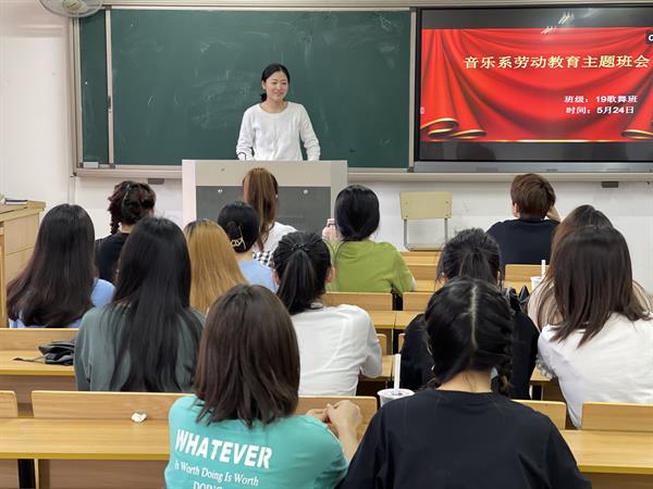 结合学校《关于落实立德树人根本任务推进学生文明行为养成实施意见》,音乐系、教务处牵头开展“幸福靠奋斗,劳动最光荣”活动,音乐系开展了劳动教育的系列活动。为了把劳动教育深入到每个班级、每个学生,5月开始,音乐系组织开展了系列主题班会。为了开好此次主题班会,音乐系专门召开班主任会议,要求各班高度重视,认真组织,积极参与,共同探索具有音乐系特色的劳动教育模式,创新体制机制,注重教育实效,实现知行合一,促进学生形成正确的劳动观,培养良好的劳动习惯和劳动能力。