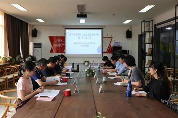 李昌国介绍了前期学校与绍兴文理学院合作办学的筹备工作情况。美术系广告艺术设计专业带头人叶峰泉对视觉传达设计专业专升本人培养方案的修订情况作了详细阐释。