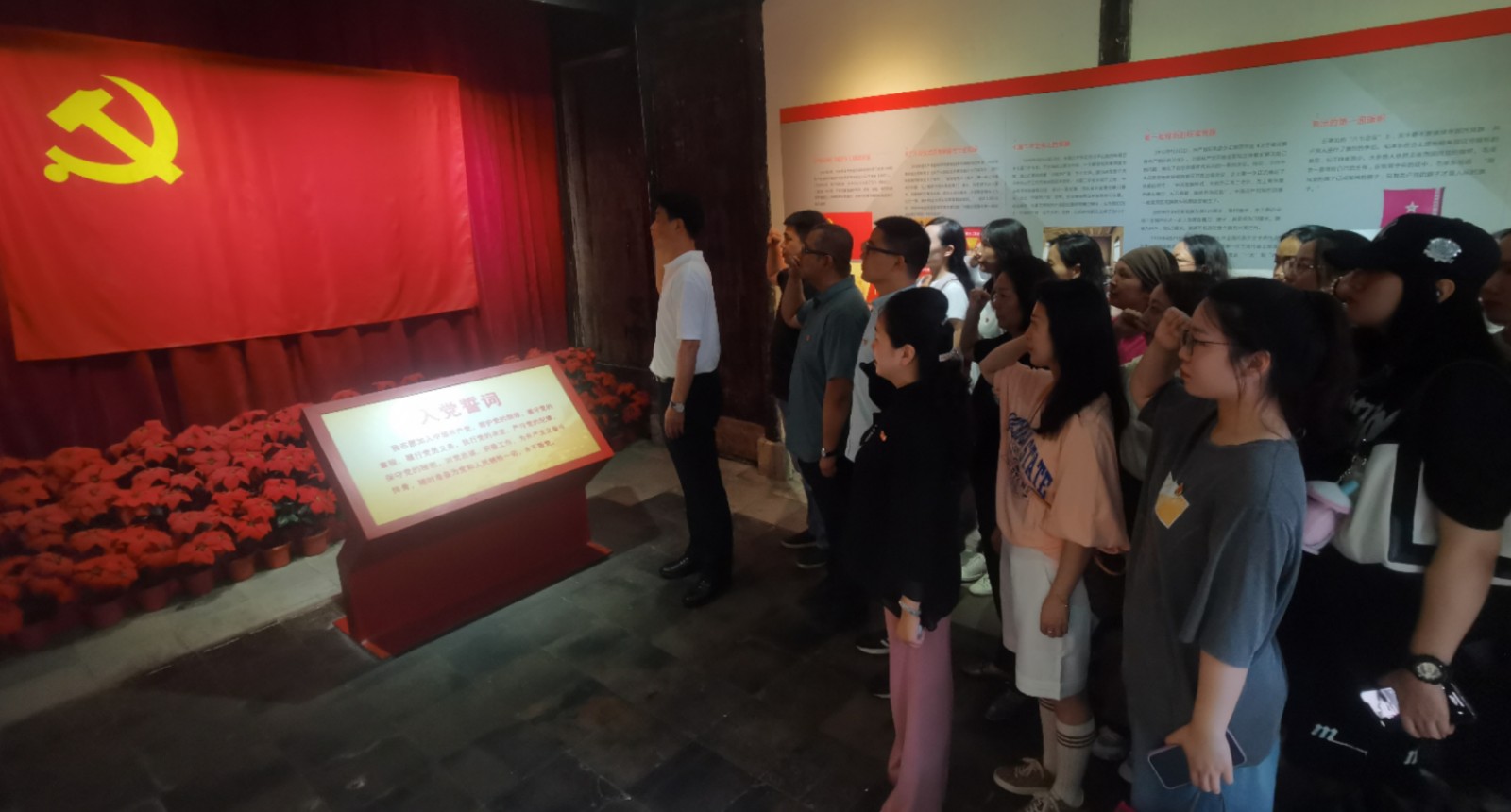 音乐系教师党员段廉说,这次参观,我印象最深刻的就是一进大门,就看到新四军苏浙军区纪念碑,左边是新四军战士英勇战斗的雕像,右边有一门122榴弹炮。大家依次进入纪念馆里进行参观,整个展区由“组建新四军”“新四军在浙西”“烈士厅”“王必成将军宿舍”“宣誓厅”“廉政厅”组成。我们了解了浙西新四军抗日根据地的历史和新四军的来历,看到了许多珍贵的照片和文物。还在党旗下进行了庄严的宣誓,再次坚定了自己为人民服务的信念和初心。