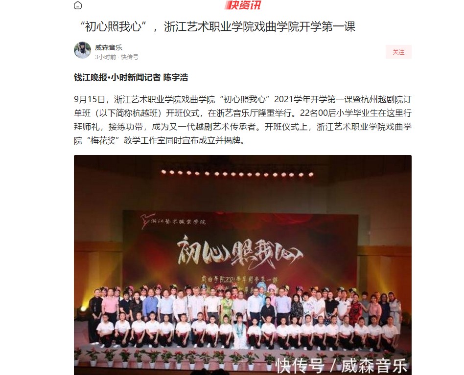 “初心照我心”作为浙艺戏曲学院打造的开学第一课思政育人品牌,,旨在以立德树人为根本任务,在传承中华优秀文化中培根铸魂,让学子以初心引领,沿艺路前行。
