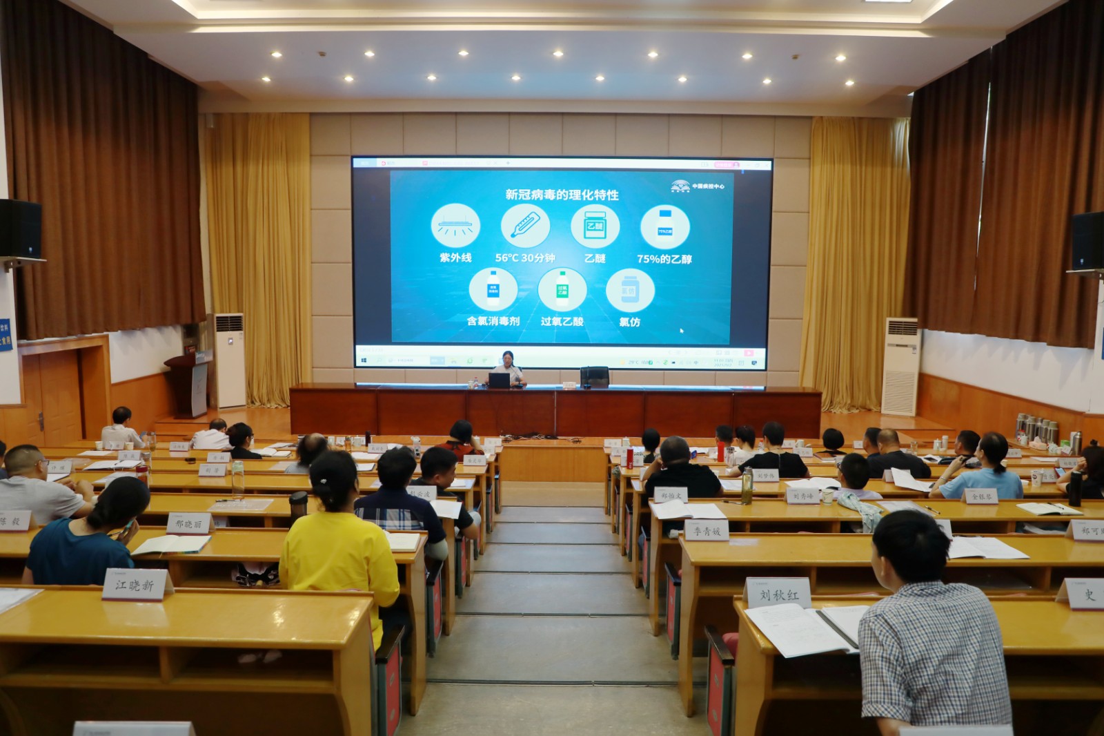 医务室人员现场作新冠肺炎防控能力培训讲座,全体人员观看防疫视频和2020年我校开学返校防疫演练视频。