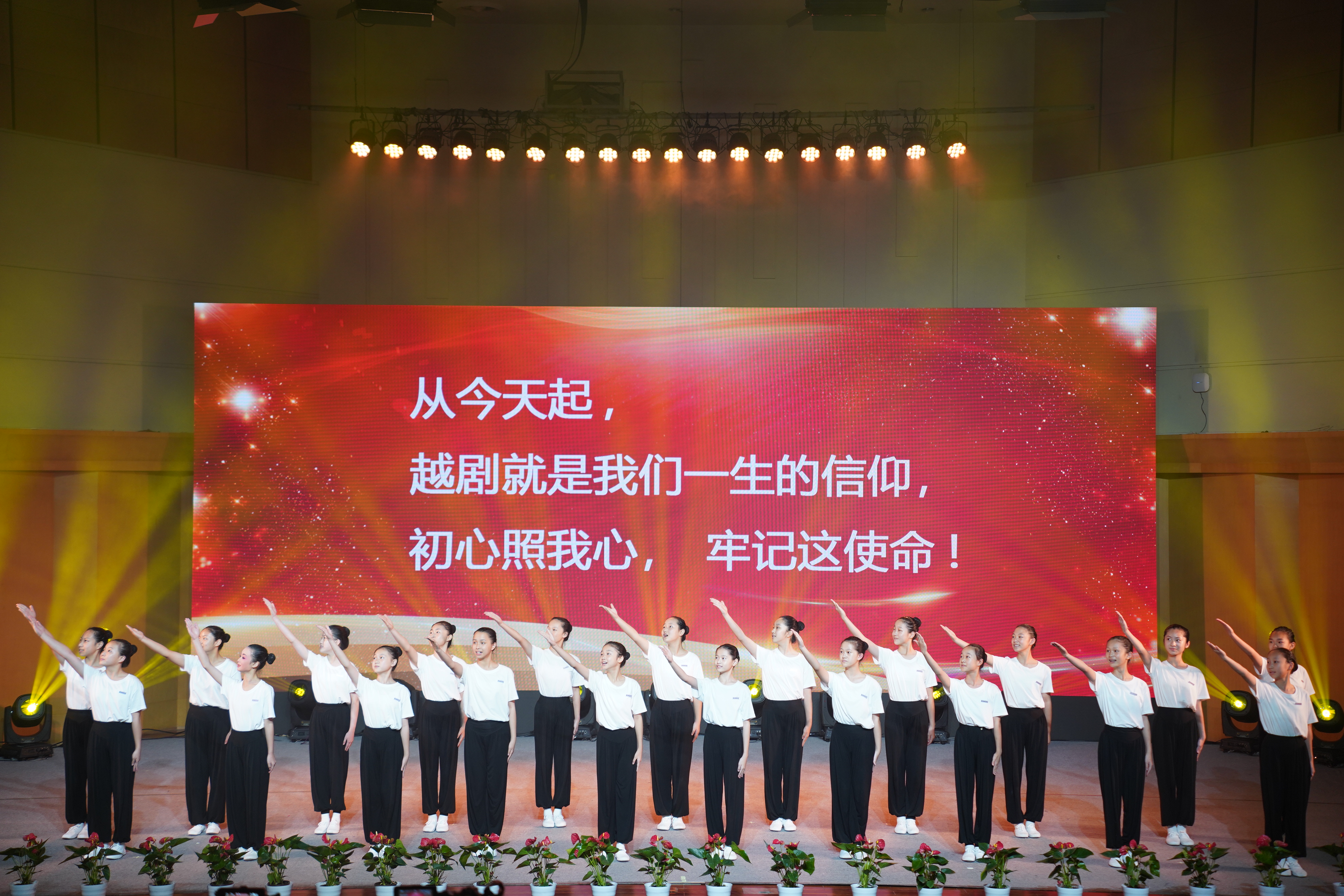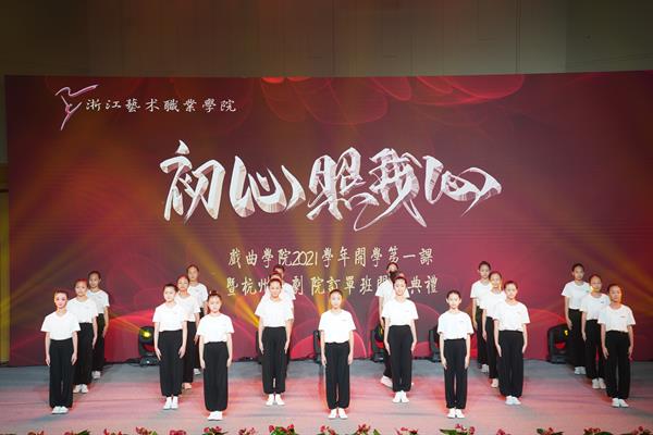 2021年9月15日,戏曲学院“初心照我心”2021学年开学第一课在浙艺音乐厅举行。 浙艺党委书记薛亮对学员们寄语厚望,希望杭越订单班的小学员们在未来的六年学习生涯中,能够按照老师的要求刻苦钻研、认真学习。台上一分钟台下十年功。秉持浙艺前辈们在戏曲舞台上刻苦训练的浙艺精神,传承浙艺薪火,为浙江的文化事业和浙江戏曲舞台贡献力量。著名导演、浙艺戏曲学院名誉院长为21级杭越班、诸暨班、松阳高腔班新生上第一课。她对学员们提出期望:希望学员要自觉把前行的脚步与国家发展的脉搏、民族复兴的进程同频共振,把成长的根基打得更牢、扎得更深,以德行健全人格。要自觉践行社会主义核心价值观,坚持立德修身,践行德艺双修;以思考获得进步,不仅要学会专业本领、文化知识,更要拥有健全的人格和爱国的精神。58名新生登场,行师礼、系腰带、诵校训,以传统庄重的方式开启了她们的越剧之路。