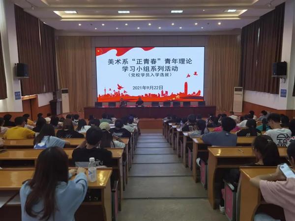 美术系党总支专职副书记顾才铭作动员讲话,他对来参加本次党校学员选拔测试活动的同学们表示赞许,对刚加入“正青春”青年理论学习小组的新成员们表示欢迎,并鼓励同学们积极参与到系部每月开展的各项理论学习与实践活动中去。希望同学们在学习、工作和生活中,不断武装头脑,锤炼本领,为美术系全体青年树立标杆、作出示范。