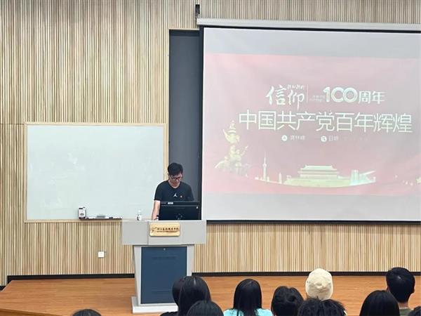 观影前,龚林峰以“中国共产党百年辉煌”为主题,通过讲述“新民主主义革命时期”“社会主义革命和建设时期”“改革开放和社会主义现代化建设新时期”“中国特色社会主义新时代”四个部分,深入介绍了中国共产党分别从救国、兴国、富国、强国四个奋斗目标走过的百年历程,为同学们上了一堂生动的微党课。