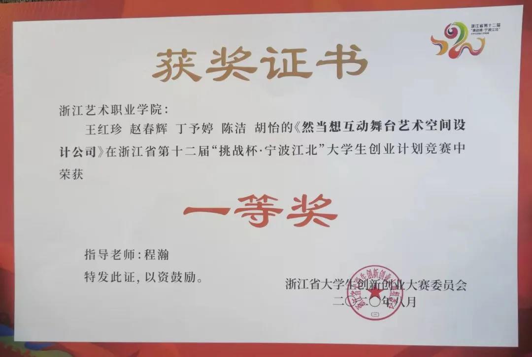 参加浙江省第十二届“挑战杯•宁波江北”大学生创业计划竞赛获一等奖。