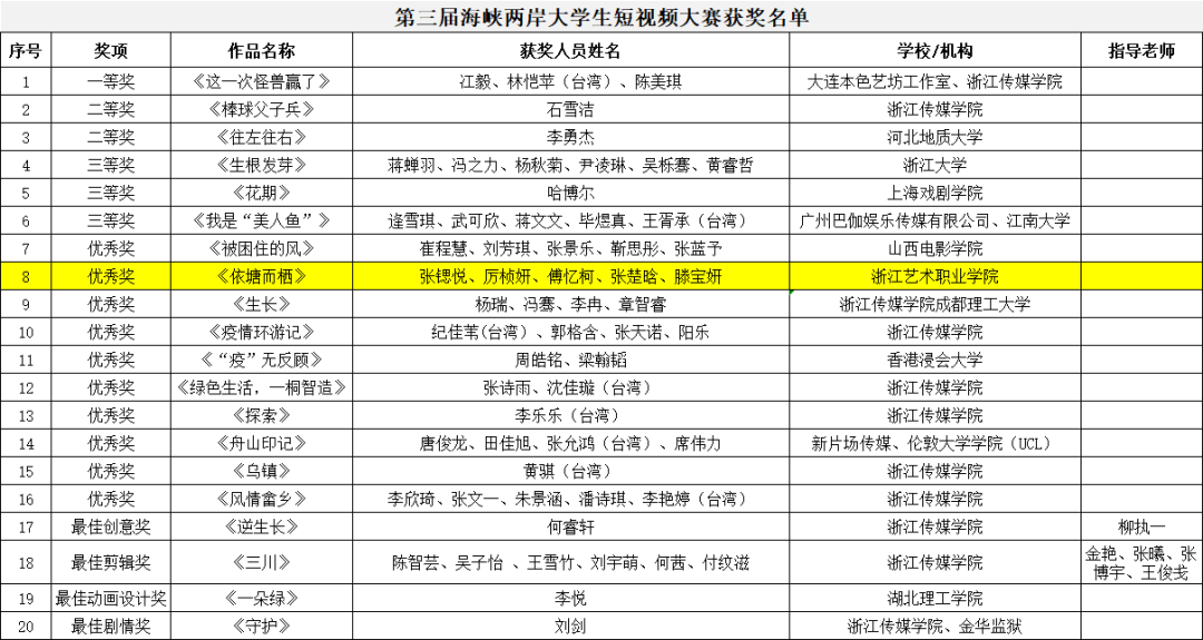 喜报 | 浙艺戏影学子在第三届海峡两岸大学生短视频大赛中斩获佳绩