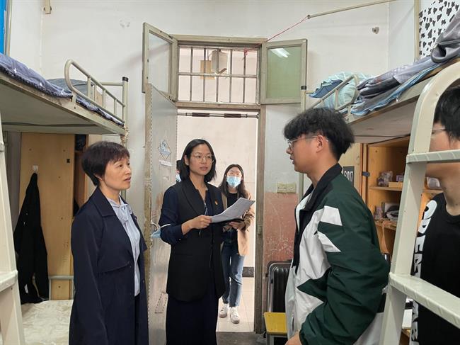 手工艺学院党总支开展10月主题党日活动,联合校资产管理处党支部、产学合作处党支部举办“暖心走访,用心守护”为主题的党员联系寝室网格化行动。