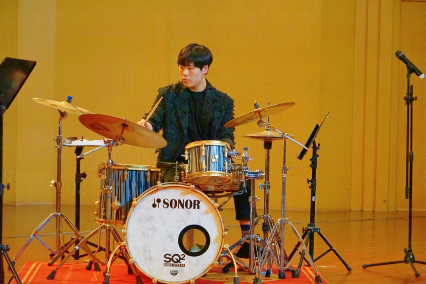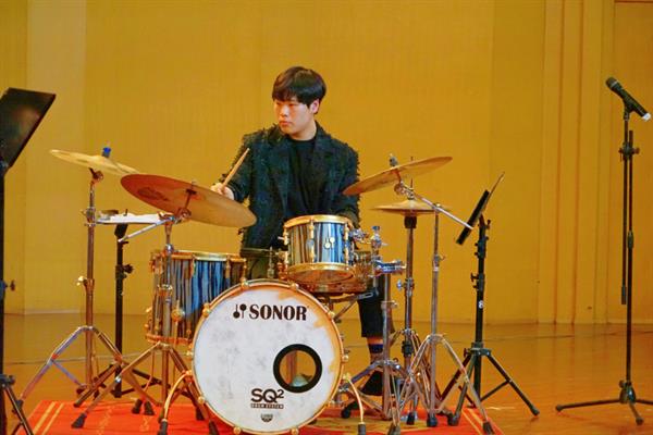 求艺之路漫漫。为了追逐心中的爵士梦,胡珂帆在专业老师的指引下,先后跟随浙艺留美归国打击乐青年教师李根学习小军鼓,英国传奇爵士鼓演奏家Clark Tracey、伯明翰皇家音乐学院爵士系副主任Andrew Bain、爵士鼓演奏家教育家Winston Clifford等老师学习爵士鼓。胡珂帆回忆道:“在浙艺的六年对我来说是一段珍贵且美好的时光,我的专业老师同时还是浙江省打击乐学会秘书长,可以说他是我的专业老师,又不止是我的专业老师,他对我方方面面都多有关心,教学时非常有耐心而且专业性非常强,在学业规划上也让我少走了很多弯路。也特别感谢母校给了我充分的专业发展机会和学习锻炼的平台。”胡珂帆回忆浙艺生活时感叹道。
