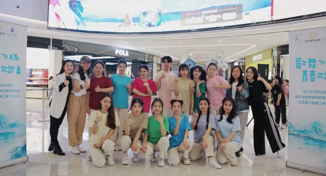 “文艺星火赋美工程”是贯彻省第十五次党代会关于推进全域文化繁荣全民精神富有决策部署的具体行动。我院歌舞表演专业学生承担了滨江银泰的文艺志愿者任务。应商场需求,首批志愿者的活动在双11晚拉开帷幕,为刚开张的滨江银泰积聚人流,场面火爆。