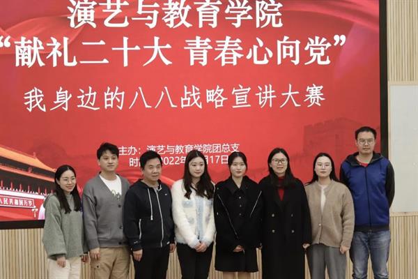 为深入学习贯彻“八八战略”这一历史决策,让全体演教师生明确自身肩负的历史使命与时代责任,凝心聚力,以忠实践行“八八战略”、奋力打造“重要窗口”作为总旗帜,不懈奋斗,以首创的锐气、奋斗的姿态、奉献的情怀,绘制新蓝图,书写新篇章。11月下旬,演教学院举办了“献礼二十大 青春心向党”——我身边的八八战略宣讲大赛,同学们踊跃报名参赛,比赛现场精彩纷呈。