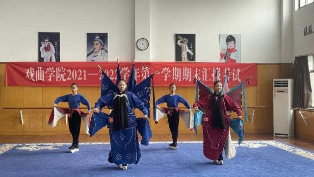 此次期末考,南京越剧班、浙江小百花班、永嘉昆剧班、诸暨越剧班、杭州越剧班、松阳高腔班的100多名学生接受委培单位院团领导、行业专家及任课老师的考核检验。腿毯、身段、把子、唱腔、越剧语音、乐理视唱、剧目,同学们努力展示所学,争取秀出最好的自己。