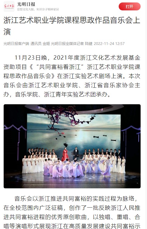 音乐会以浙江推进共同富裕的实践过程为脉络,在全校范围内广泛征稿,创作了一批反映浙江人民推进共同富裕进程的优秀原创歌曲,以独唱、重唱、合唱等演唱形式展现浙江在高质量发展建设共同富裕示范区进程中涌现出的动人故事,唱响“共同富裕看浙江”的时代强音,是继2020年度浙江文化艺术发展基金资助项目民族管弦乐音画《听见江南》后打造的一台原创声乐作品晚会。