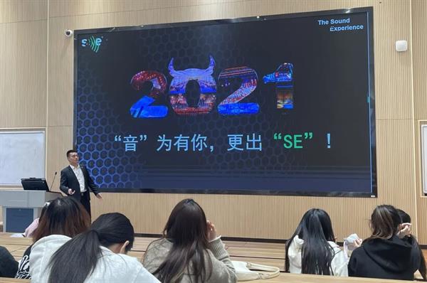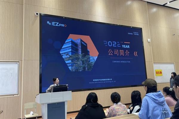 (六)深圳易科声光科技股份有限公司是国家高新技术企业,针对基于听觉、视觉需求的声光电多媒体应用场景提供音视频整体解决方案的专业设计、产品销售、系统集成、运行维护等全链路一体化服务。戏剧影视学院音像技术专业往届毕业生(现为易科团队员工)也来到招聘会现场,表示希望能有更多的学弟学妹加入易科。