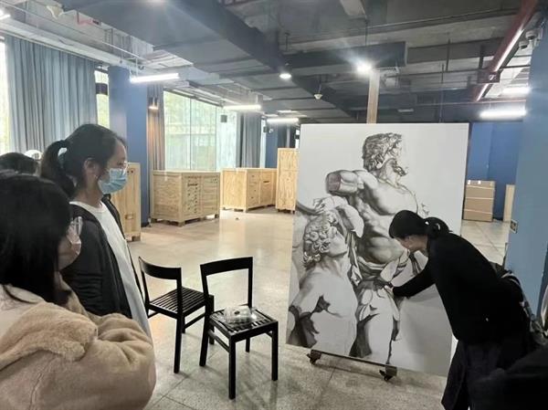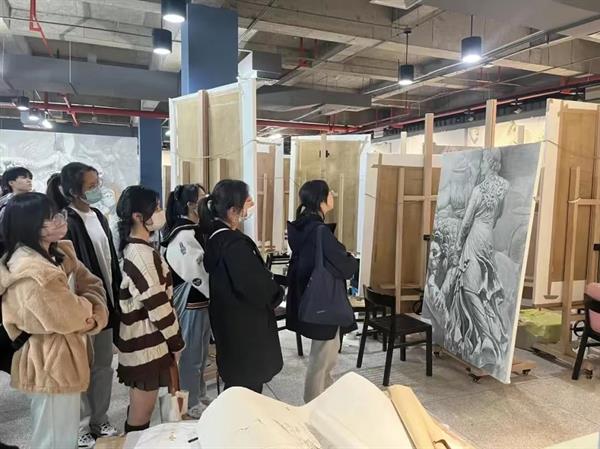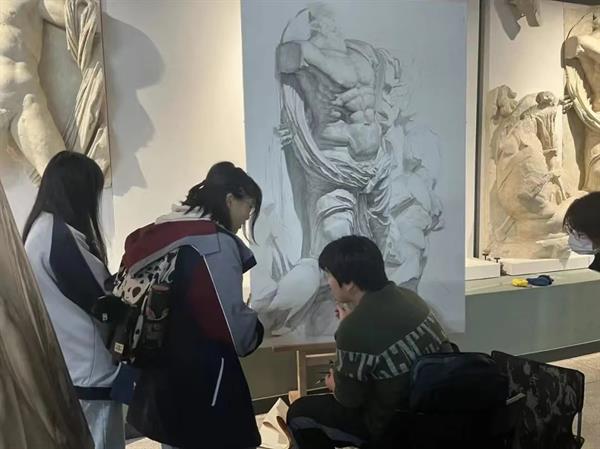 为扩展学生的专业视野,助力提升审美素养,陶冶艺术情操,11月23日下午,基础造型(附中美术)教研室组织2022级中专绘画班31名新生前往中国美术学院专业基础教学部帕加马祭坛浮雕素描写生教学现场参观学习。