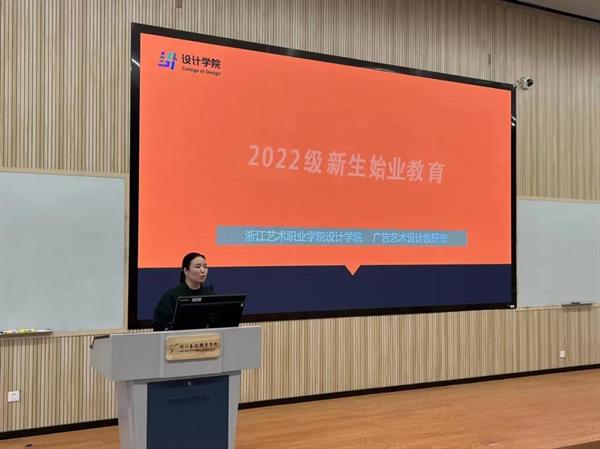 11月3日中午,广告艺术设计专业在阶梯一教室举行始业教育活动。广告艺术设计专业专任教师陈溢之围绕“学什么?怎么学?在哪学?收获什么?能做什么?”五个问题,对本专业的培养目标、课程设置、教学条件、教学实践成果及就业方向等内容做了详细的讲解。广告艺术设计专业教研室主任商易文为新生致辞,她对同学们加入浙艺广告大家庭表示热烈欢迎,希望同学们在大学中能确定未来发展方向和目标,不负时代不负韶华,为强国建设贡献青春力量。
