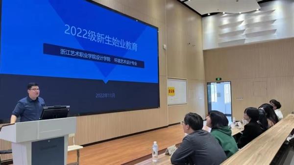 11月2日中午,环境艺术设计专业新生始业教育在7号楼阶梯二教室举行。环境艺术设计专业教研室主任陶靓子介绍了教师团队并对新同学提出思想建议。环境艺术设计专业专任教师毕存碧向同学们介绍了环境艺术设计专业课程、方向特色、职业岗位实践、1+x证书等内容,为新同学展示了环境艺术设计专业的基本架构和特色。本专业旨在为社会培养居住空间设计、公共空间设计、软装设计、家具设计、家居工艺设计、展具设计、会展设计展陈设计、综合设计等工作的高素质技术技能人才。