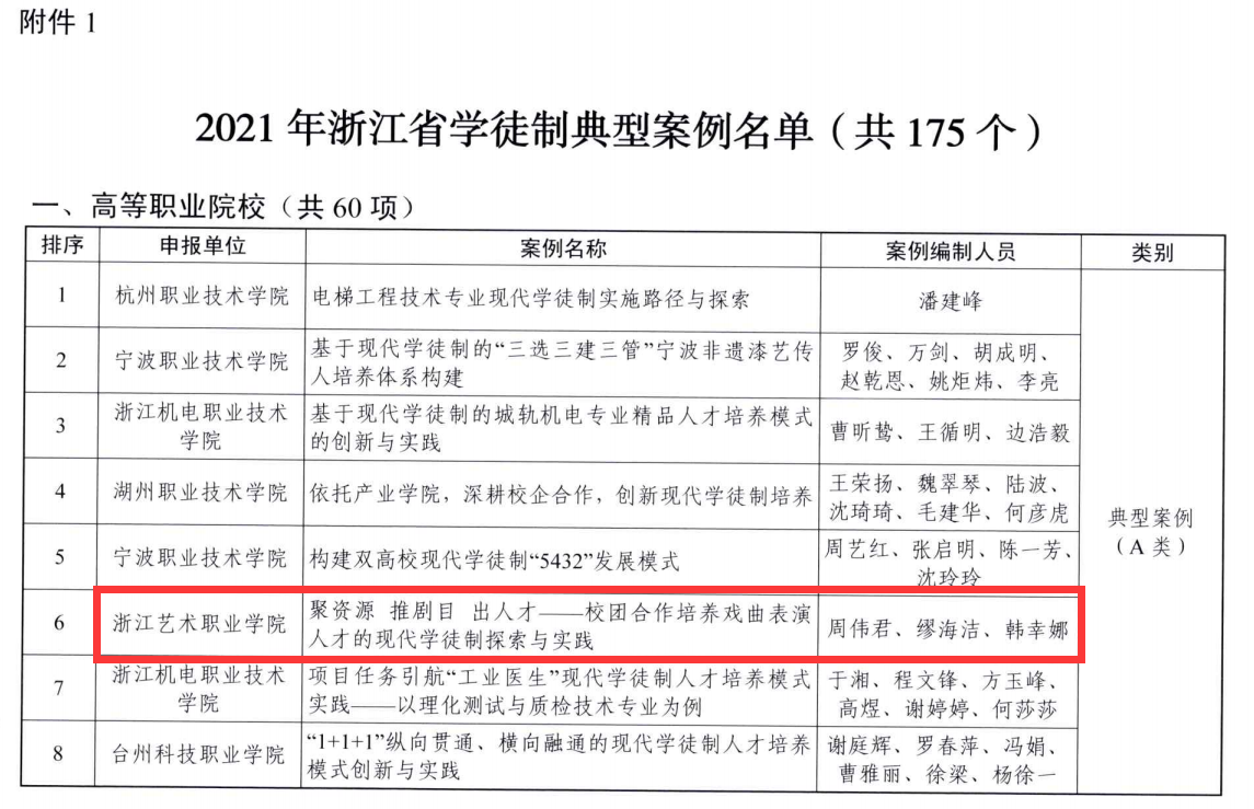 浙艺戏曲表演专业现代学徒制案例获评省“学徒制典型案例(A类)”