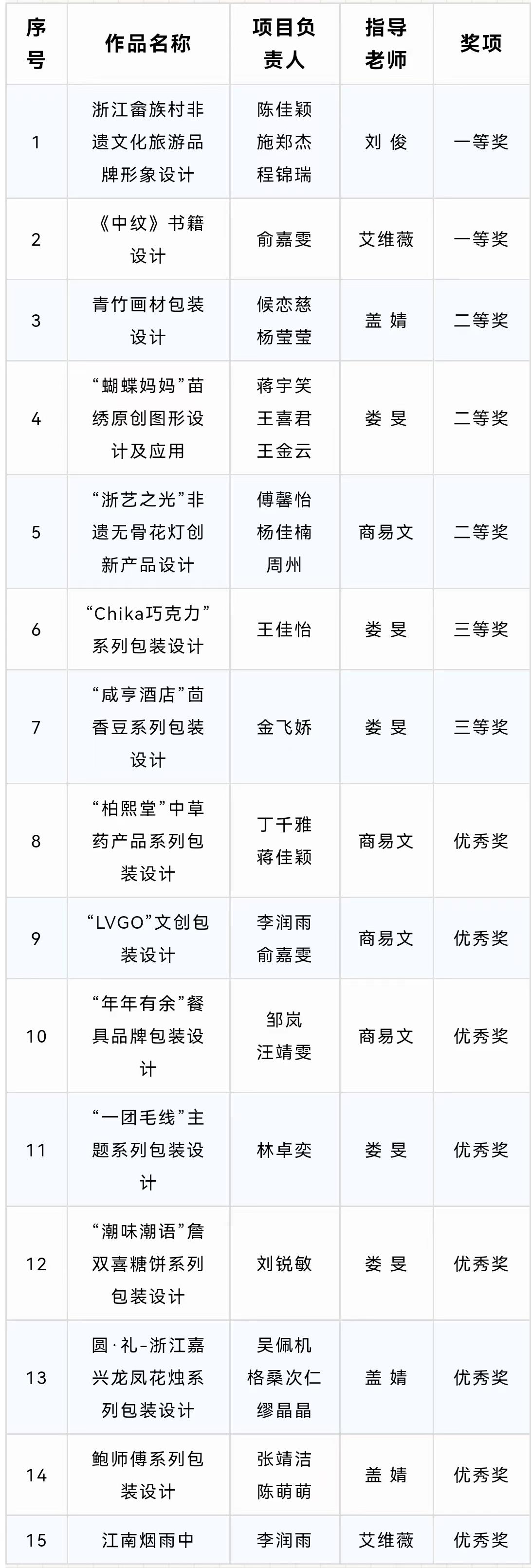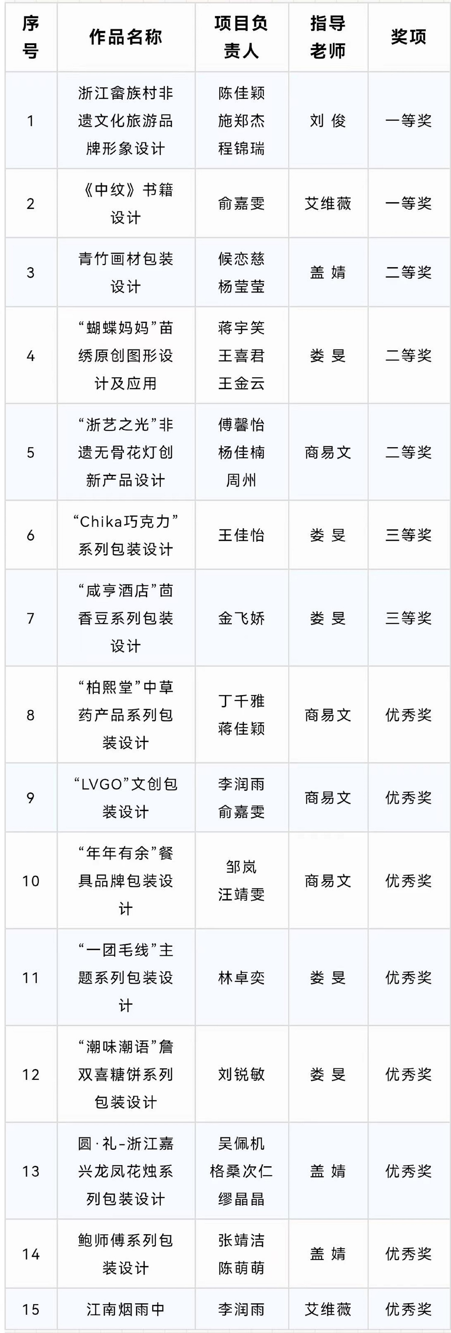 为提高学生运用知识解决实际问题的能力,积极鼓励学生参加各类专业竞赛,培养具有创新精神和实践能力的高素质技术技能人才。近日,由设计学院广告艺术设计专业教师指导的学生参赛项目在2022中国包装创意设计大赛与2022全国(宁波)高校会展创意设计大赛中连获佳绩。