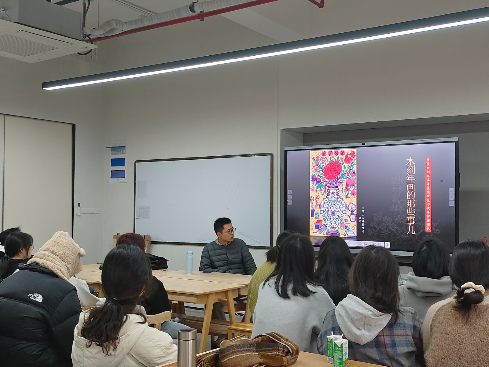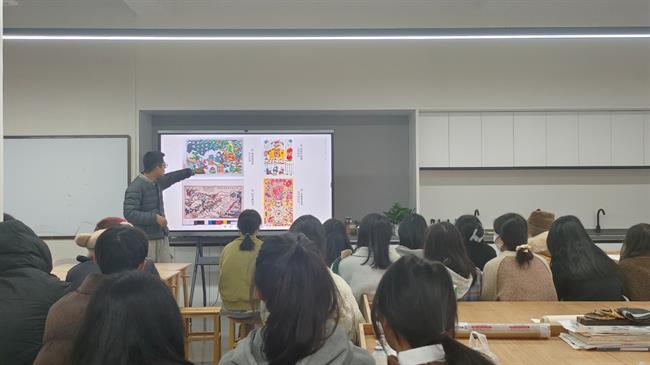 此次木版年画讲座,同学们拓展了有关水印木刻的专业知识同时也开阔了艺术视野,提高了人文艺术修养。作为木版年画的传承人和见证者,如何让民俗得以传承,重点就在于创新和融合。民俗文化能与现代设计相结合,才是创新中的传承。本次讲座,为民族传统技艺以及其他美术类专业同学的学习添砖加瓦,也为民俗文化的传播拓宽新的道路。