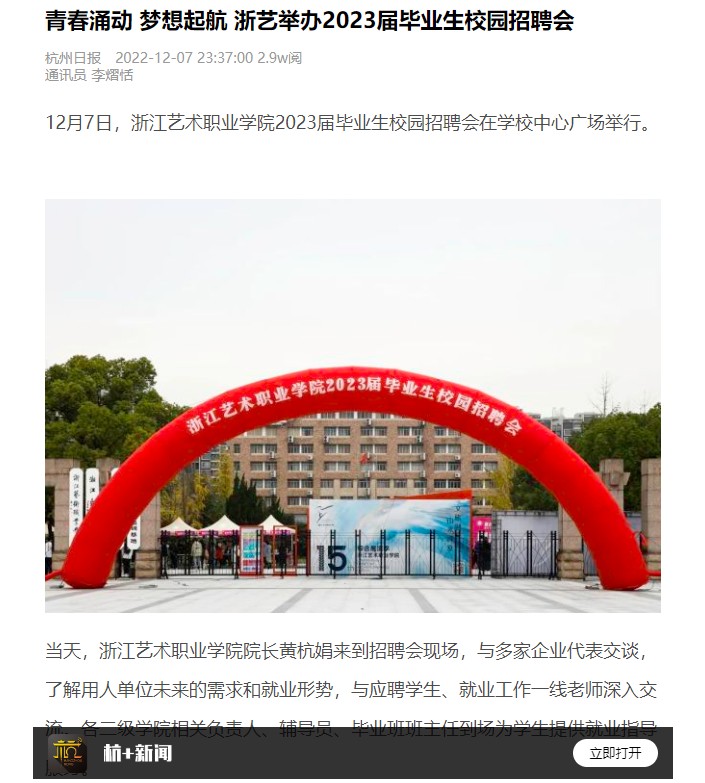 杭州日报:青春涌动 梦想起航 浙艺举办2023届毕业生校园招聘会
