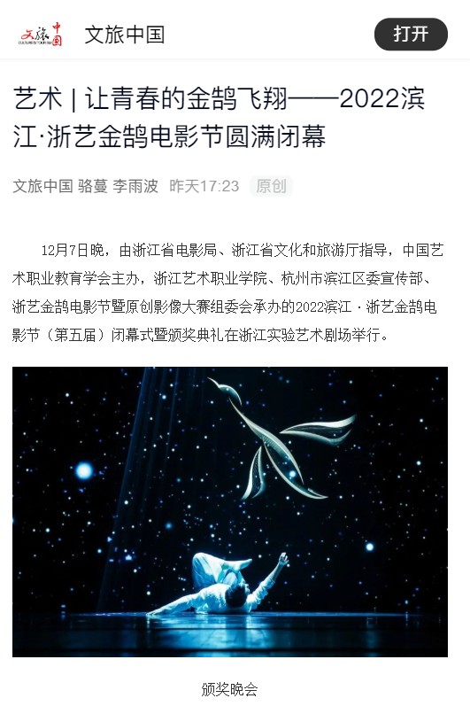 文旅中国:艺术 | 让青春的金鹄飞翔——2022滨江·浙艺金鹄电影节圆满闭幕