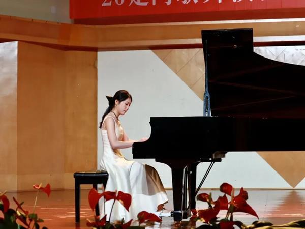 叶雅婷演奏的改编钢琴曲《彩云追月》采用了中西结合写作手法,用钢琴模仿中国传统器乐,演绎了中国的管弦乐曲,利用钢琴富含变化的音乐旋律和指法,在或动或静的音乐旋律当中,展现出彩云与月的和谐之美。