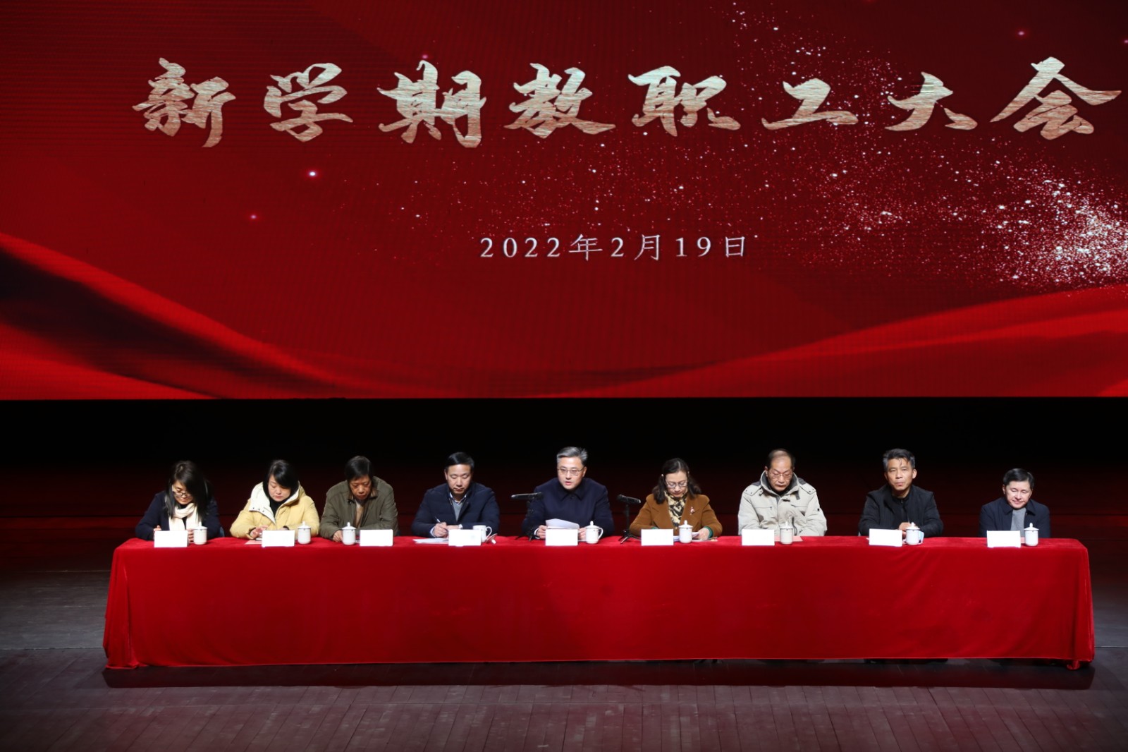 薛亮在讲话中表示,2021年是意义非凡的一年,在全校师生的共同努力下,学校在疫情防控、“双高”建设、教学改革、科研创作、人才培养、校园安全、党风廉政和基础建设等方方面面交出了优异答卷、取得了丰硕成果。2022年是党的二十大和省第十五次党代会召开的重要一年,是全面落实全国职业教育大会和省委文化工作会议精神的重要一年。全校要围绕“创造新业绩、迎接二十大”工作主题,按照“做强中职、做大高职”办学思路,着眼职业教育大发展和省委打造新时代文化高地“两个发展机遇”,扩大办学规模、狠抓教学质量,进一步加快学校高质量发展步伐,重点抓好6个方面的工作。
