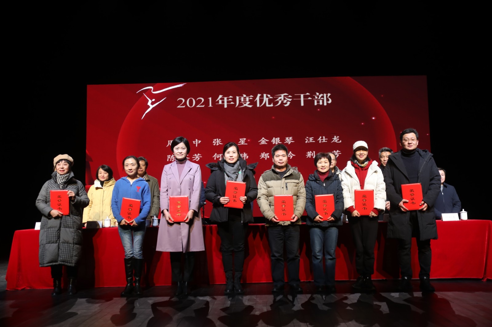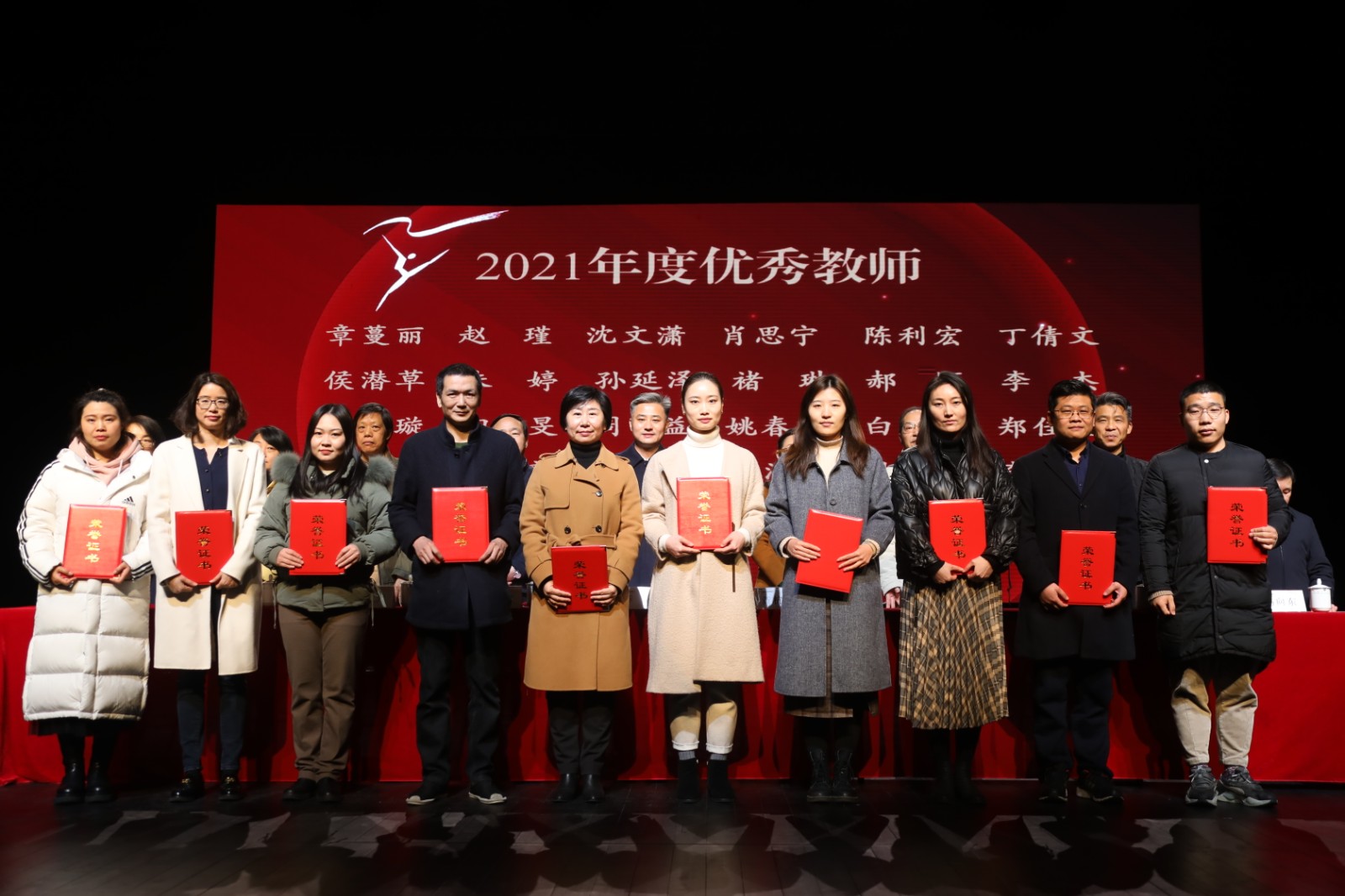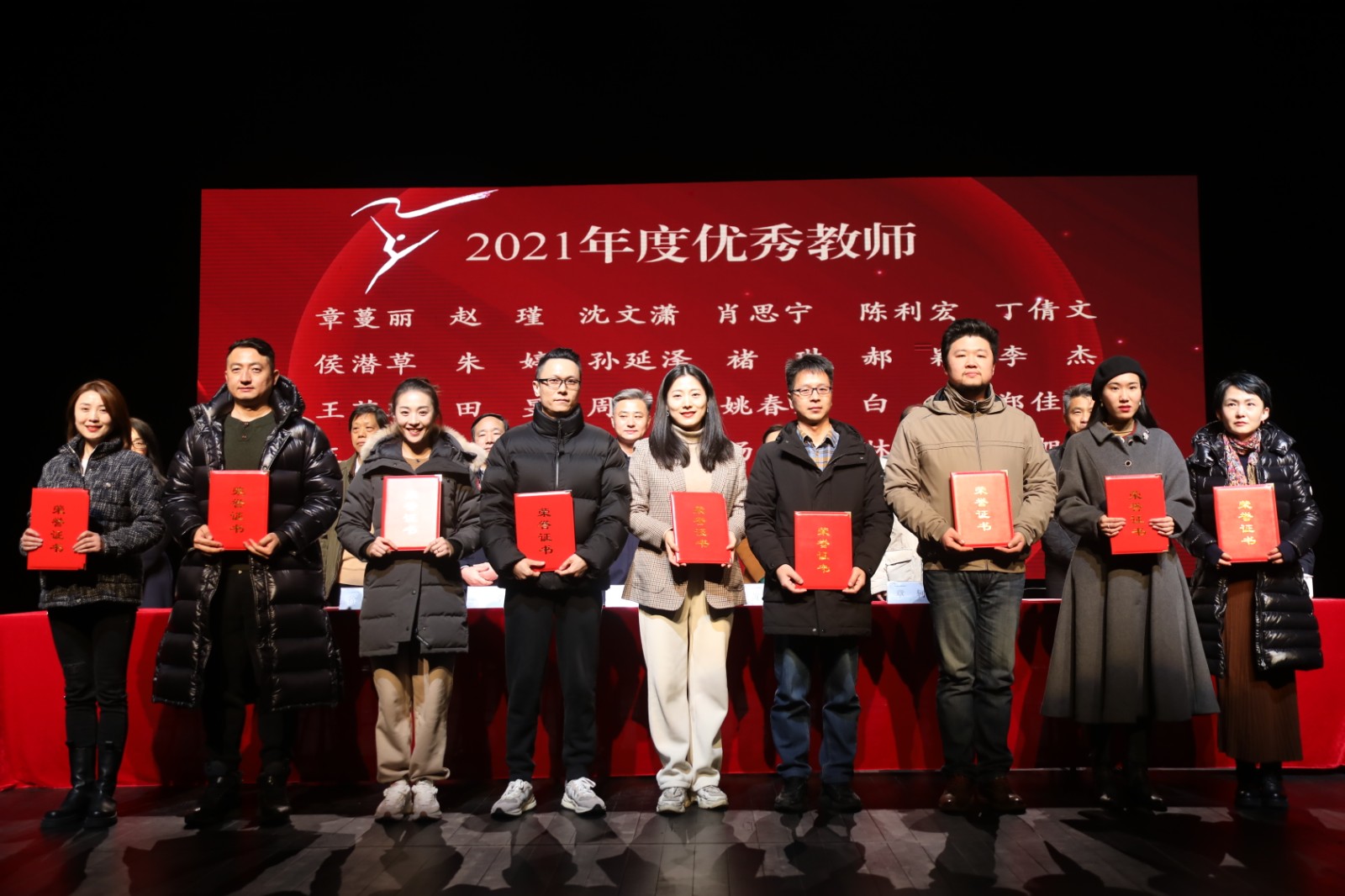 党委书记薛亮总结2021年度工作,部署2022年重点工作。党委副书记夏开堂宣读2021年度获得党委政府荣誉奖项,宣布学校2021年度先进表彰名单。宣传部、财务处、继续教育学院、音乐系、影视技术系、社会科学部6个部门获评先进集体,周应中等8人获评优秀干部,章蔓丽等31人获评优秀教师,朱建炜等23人获评优秀教育工作者。人事处(教师工作部)副处长戴闵青宣读师德师风倡议书。