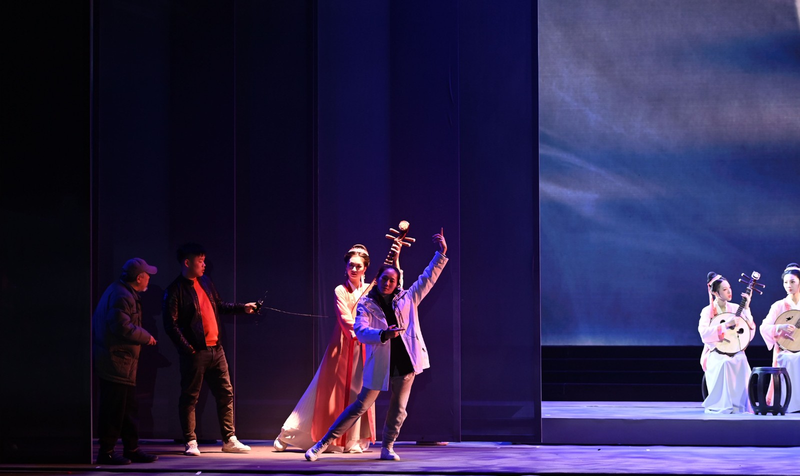 做民乐专场调度很关键,包峥剡坦言,演出节奏要把握好,要抢时间摆放好道具,中间不能有停顿,要连贯流畅,不然会影响观看效果。演职人员将近160人,一个人就要把话筒、凳子、琴等搬运摆放好,画外音也要在规定时间内做好。