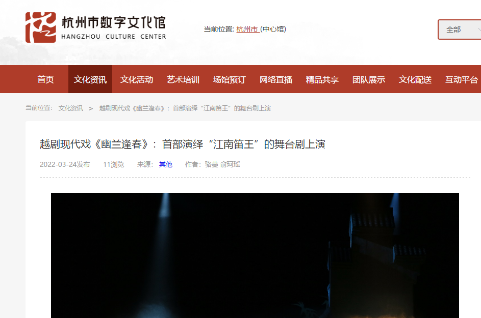 杭州市数字文化馆:越剧现代戏《幽兰逢春》:首部演绎“江南笛王”的舞台剧上演