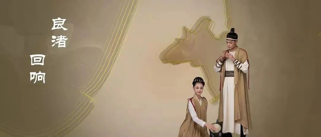 《听见江南》的意境美在演出当晚给观众留下了深刻印象。为了在舞台上营造出像古代花窗一样透视的效果,导演特意把有些演出乐队安排在舞台靠后的位置。《灯月交辉》中服装用了三种不同的红色形成层次,舞台上虚实结合,其中月亮的设计与半角亭是空间透视的效果,也有视觉夸张的设计。在宽幕布上打上树枝,舞台画面很有层次感。《良渚回响》中把舞台空间分成了两部分,让两个空间里的演员有互动交流。之前在良渚博物馆参观时,看到的象形文字、原始洞穴、年画底色等都对包峥剡设计这个节目有所启发。