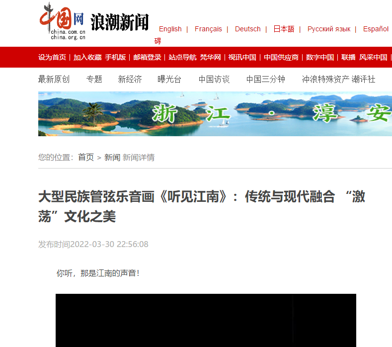 中国网浪潮新闻:大型民族管弦乐音画《听见江南》:传统与现代融合 “激荡”文化之美