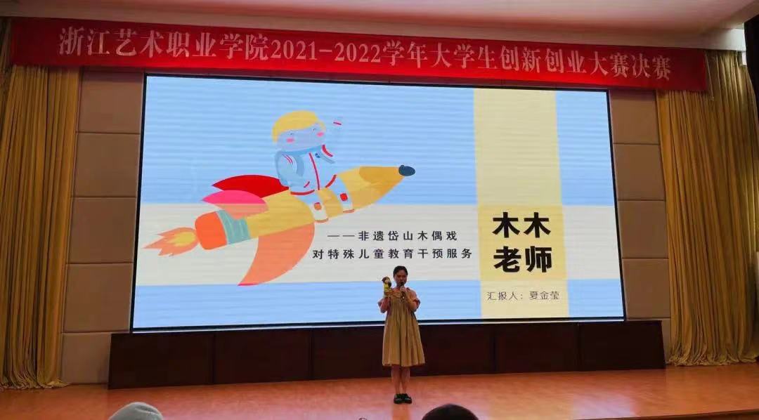 最终关注特殊儿童教育的《木木老师—非遗岱山木偶戏对特殊儿童教育干预服务》项目摘得桂冠。项目负责人夏金莹表示,将继续深挖非遗文化,与自身专业所结合,不断在创新创业的道路上努力前行。