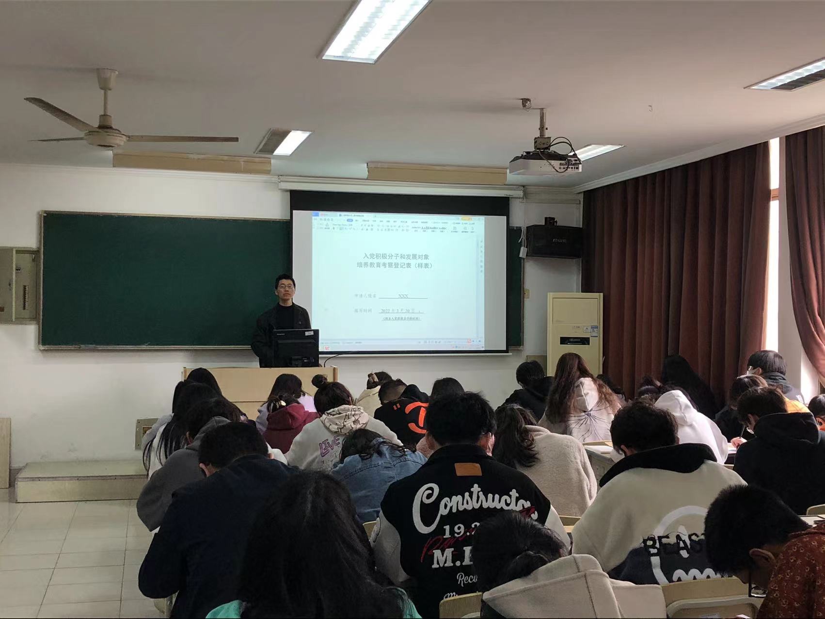 为贯彻落实新时代党的建设总要求和新时代党的组织路线,加强对入党积极分子的培养教育,提升入党积极分子思想政治素质,切实保证学生党员发展质量。4月1日中午,戏剧影视学院学生党支部在4318教室举行第一期入党积极分子培训班,68名入党积极分子参加。