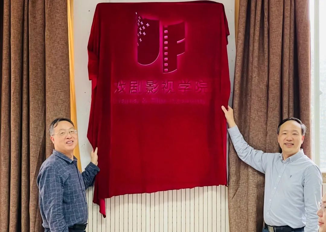 夏开堂与彭云波共同为戏剧影视学院“两系一中心”揭牌,为两位系主任颁发聘书。