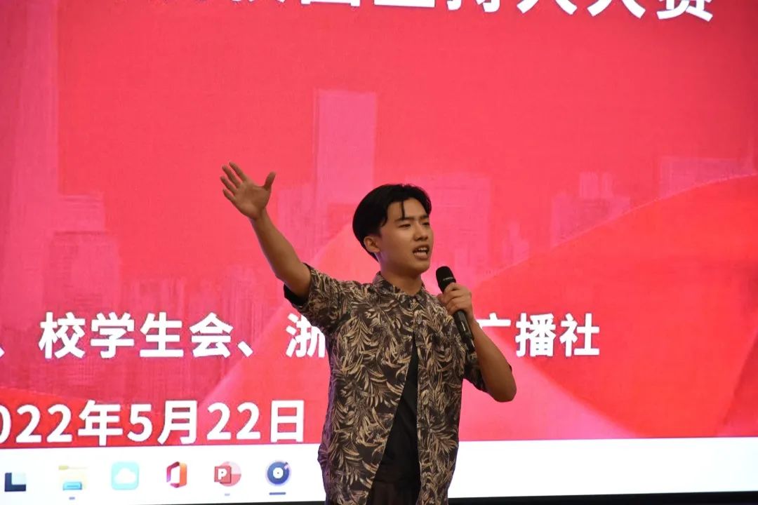 5月22日,由校团委主办,校学生会、“浙艺之声”广播社承办的“争锋金话筒”主持人大赛决赛在图信报告厅举行。浙江省朗诵协会荣誉成员梓豪、浙江之声FM88主持人雨潼等专业主持人担任评委。