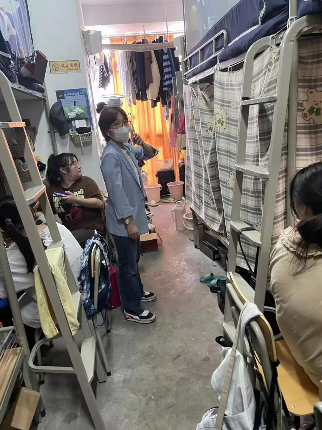 25日中午,老师们在走访寝室的过程中耐心解答同学们学习和生活上的各种问题,听取同学们反馈的意见和建议,协助他们解决实际困难,给学生带来“全方位的关爱”。