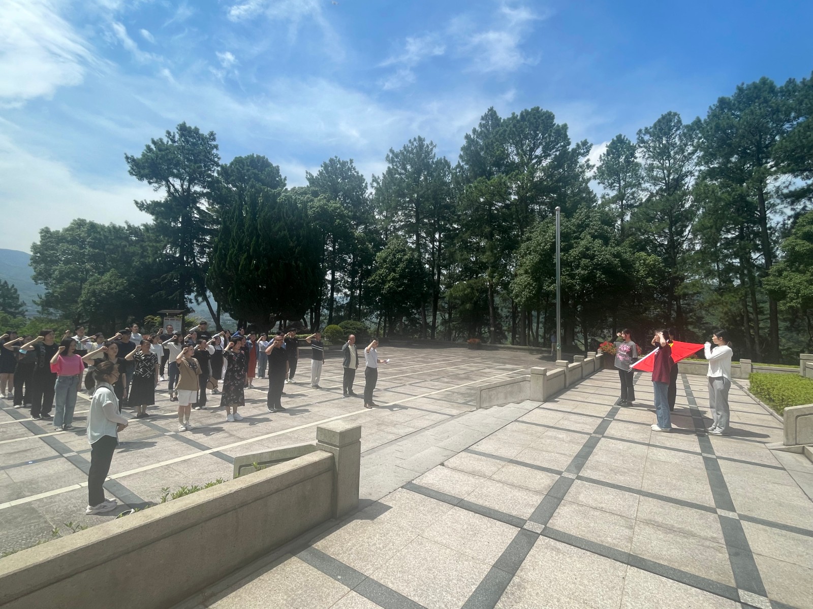 在四明山革命烈士纪念碑前,向革命烈士敬献花篮,全体党员三鞠躬,并依次瞻仰纪念碑,表达对革命先烈的深切哀思和崇高敬意。全体党员重温入党誓词,重新检视入党初心,回忆党员经历,接受党性洗礼,进一步激发奋进动力。