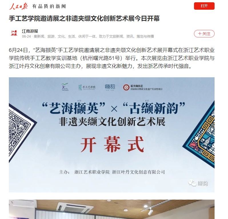 人民日报:手工艺学院邀请展之非遗夹缬文化创新艺术展今日开幕