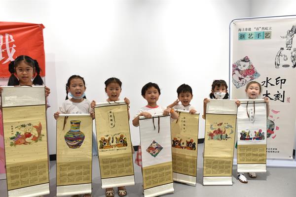 木刻韶年,水印芳华。手工艺学子现场示范绘、刻、印等一系列制作流程,将宣纸、木板和颜料巧妙融合,一幅幅精美的水印木刻版画跃然纸上,让孩子们连连感叹水印木刻的神奇。