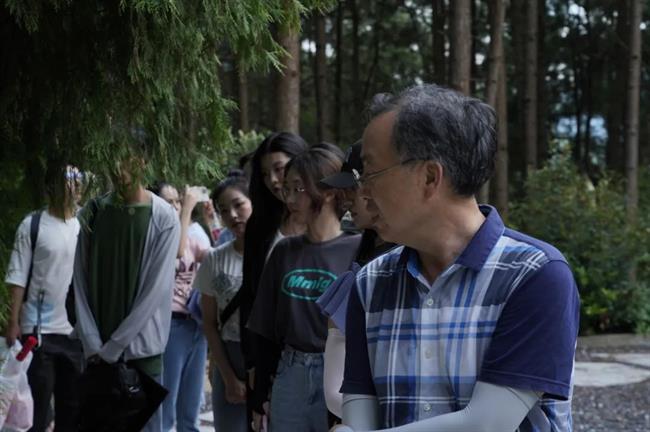 在红色革命老区白马村,服务队成员们来到红军北上抗日先遣队烈士纪念碑前,听讲解员讲述抗战时期在白马村惊心动魄的抗日故事,纪念碑两旁松柏成荫,葱茏茂密,象征着革命英雄的功业万古长青。