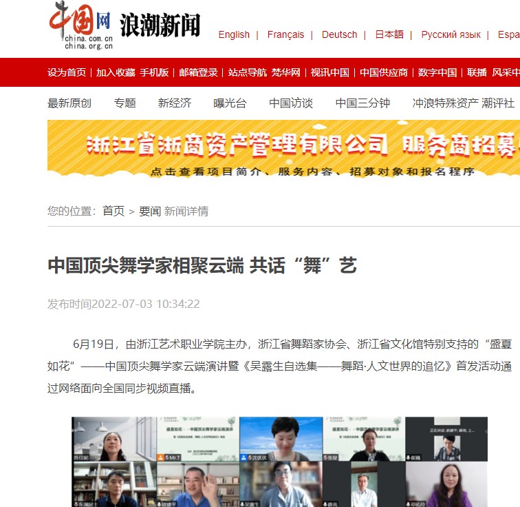 中国网浪潮新闻:中国顶尖舞学家相聚云端 共话“舞”艺