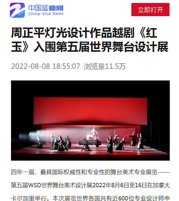 中国蓝新闻:周正平灯光设计作品越剧《红玉》入围第五届世界舞台设计展