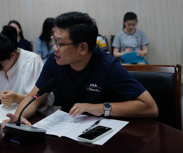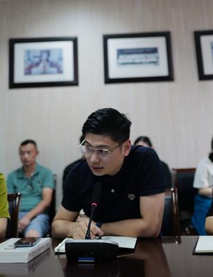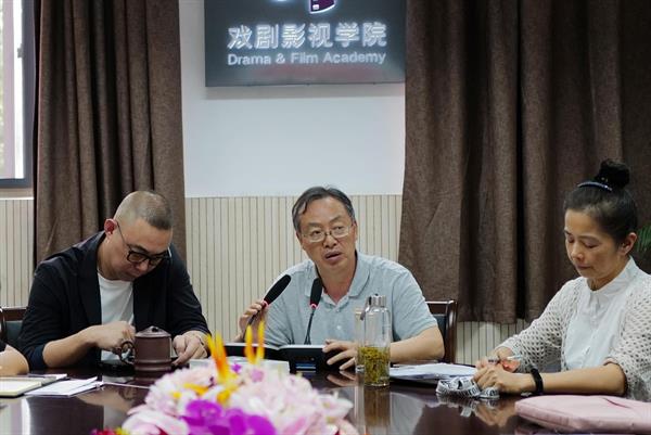 院长助理徐旭恒汇报戏剧影视学院创作中心在新学期的6项重点工作安排,向全体教师表达了积极申报创作项目的愿景。
