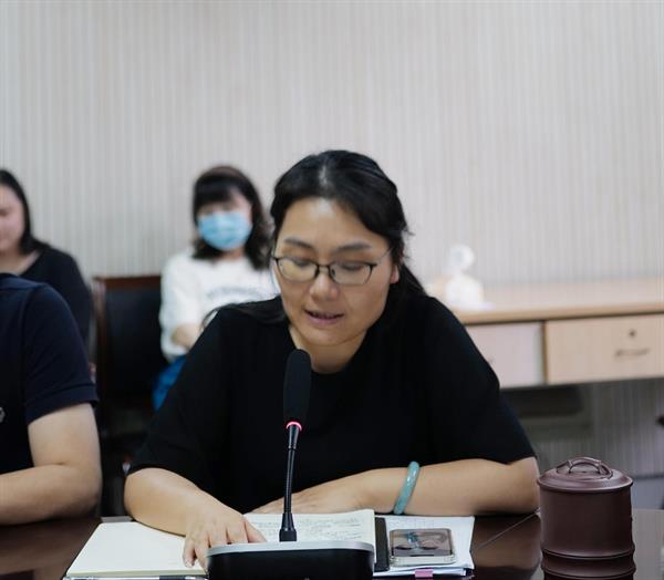 学院党总支专职副书记许瑛通报了2022届毕业生就业情况,分析了新学期学生工作基本情况,对学生报到、新生工作做了简单介绍,对全体教职工提出思想认识到位、疫情防控到位、全员育人到位三点要求。