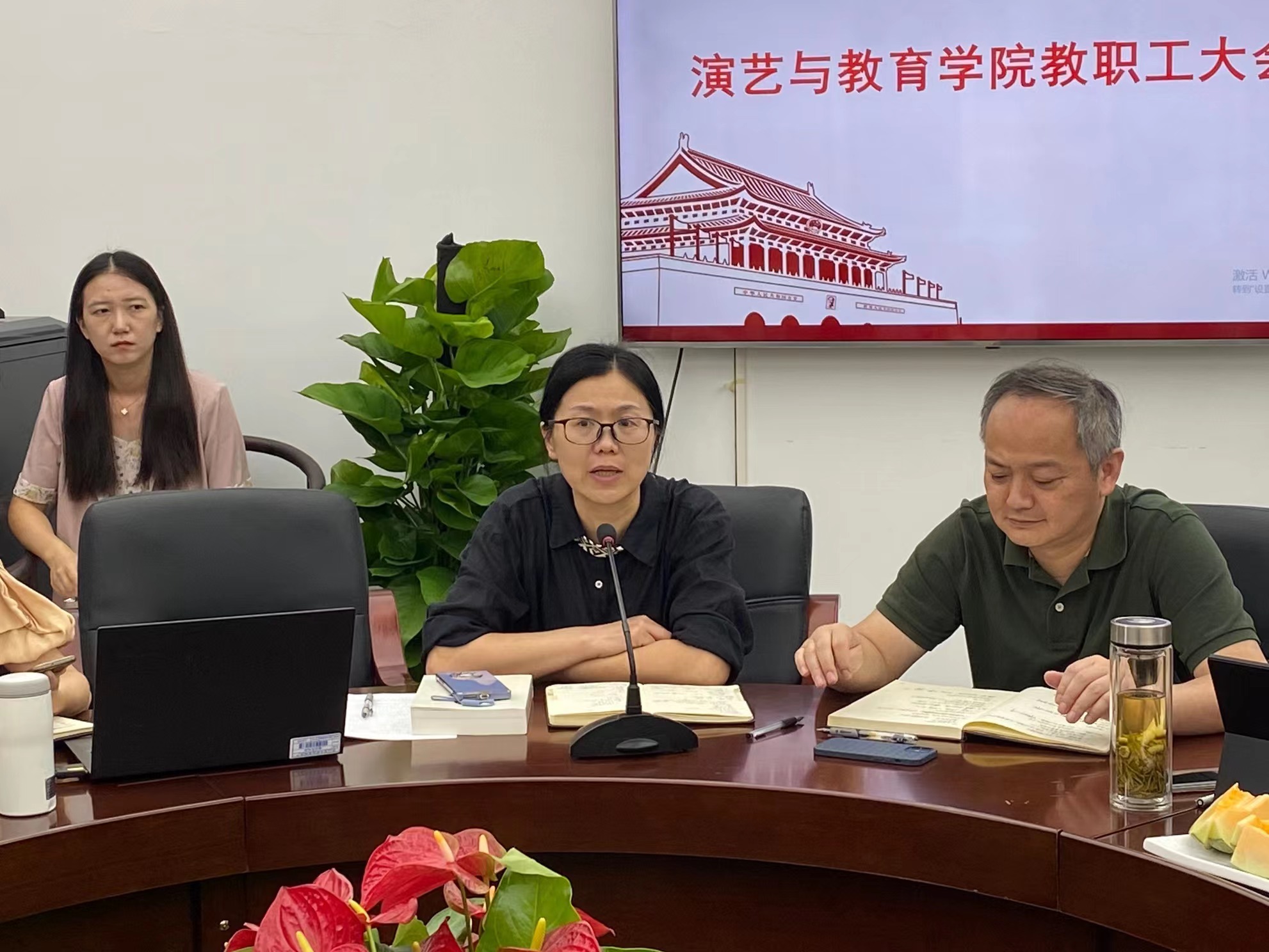 院领导班子就新学期工作重点、日常管理具体事宜作部署安排。各教研室主任就学生暑期专业实践实习工作作简单总结,并汇报了新学期的教学安排与重点工作。演教学院老师们纷纷表示新学期要以更加昂扬的奋斗姿态投入专业建设中,以实际行动迎接党的二十大胜利召开。