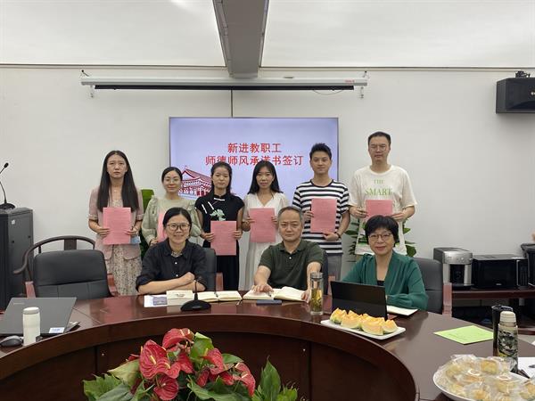 演教学院组织新进教职工签订师德师风承诺书,同时全体教职工共同重温了《新时代高校教师职业行为十项准则》,进一步明确了师德师风网格化建设的内容与要求。希望每一位教职工提高思想认识,严格规范自身言行,严于律己、认清红线、恪守底线,以德立身、以德施教。